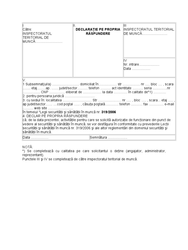 Declaratie Pe Propria Raspundere