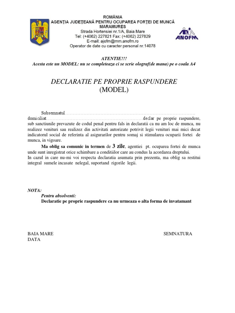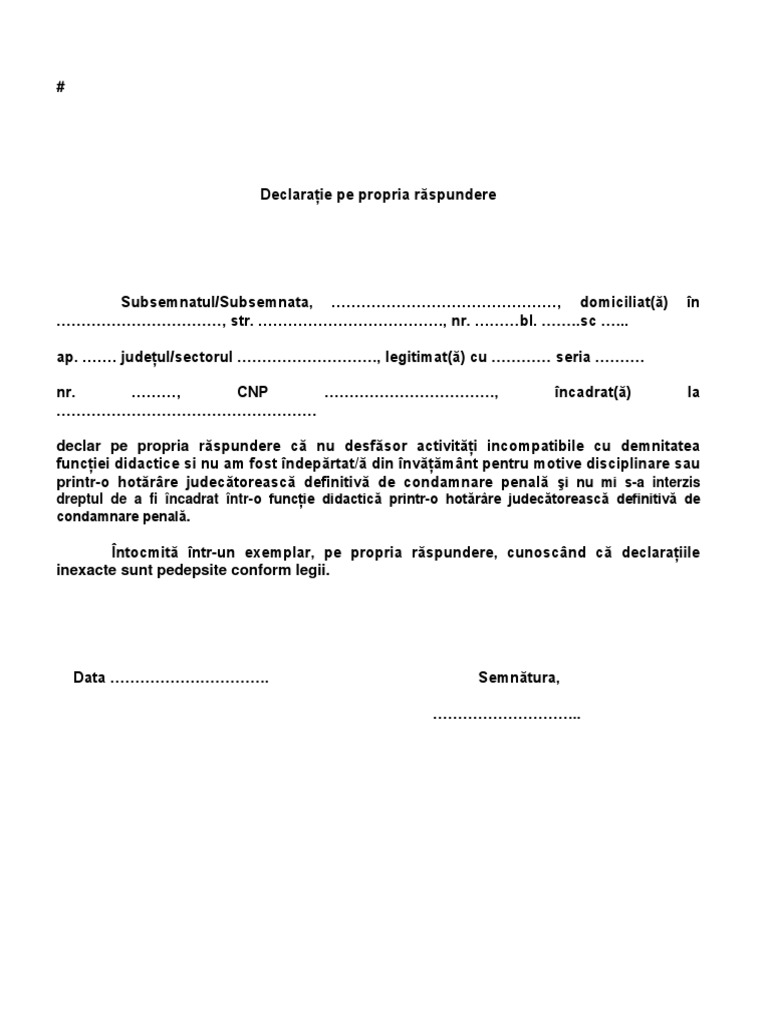 Declaratie Pe Propria Raspundere 4 Pdf