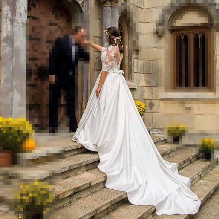 Rochie De Mireasa Tip Printesa Cu Trena Si Maneca Lunga Sighisoara